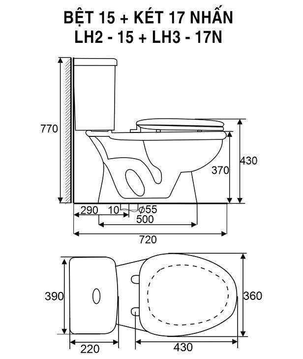 - Nút nhấn 2 chế độ xả