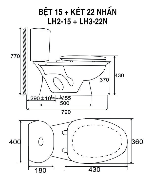 - Nút nhấn 2 chế độ xả