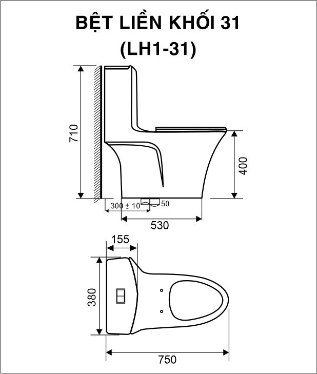 - Hệ thống xả: Xả xoáy kết hợp xả đẩy, lực xả mạnh, sạch và êm